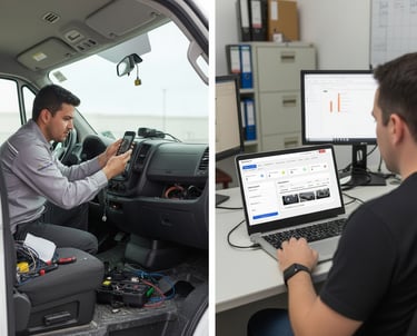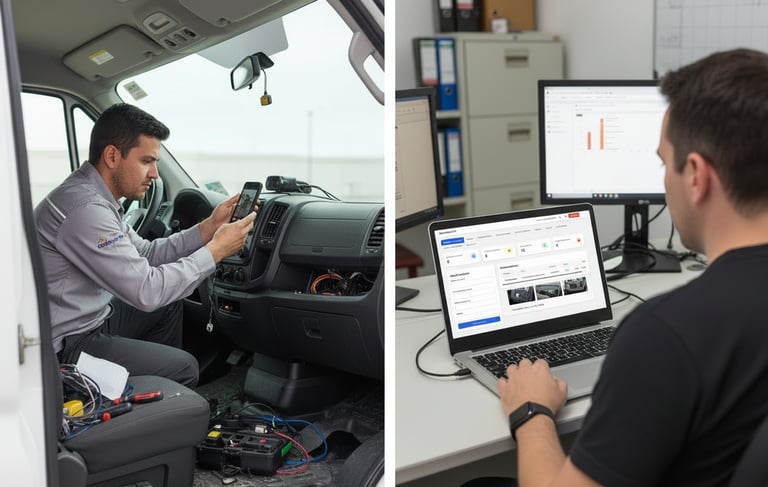 Creación de Órdenes de Servicio: Genera "Trabajos" (Instalación, Revisión, Desinstalación) con toda la información necesaria: cliente, vehículo, dirección y fecha.